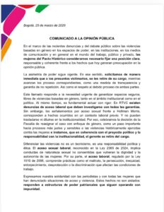 Uno de los puntos más álgidos del comunicado es la referencia directa a la situación en el sistema de medios públicos. Las firmantes señalaron que en RTVC existen denuncias de acoso laboral que deben ser investigadas con rigor.
